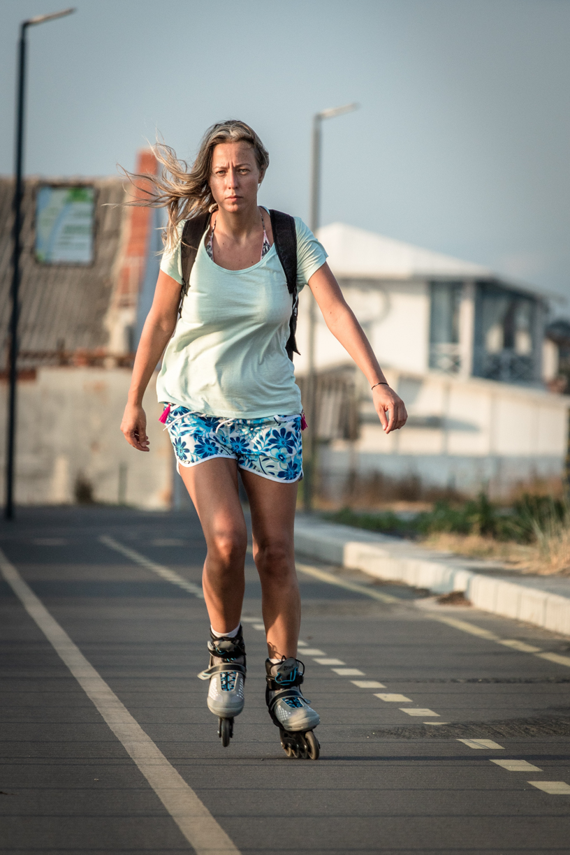 Dva klíčové prvky: jízda na kolečkových bruslích a brzdění na kolečkových bruslích. Při samotné jízdě je klíčová koordinovaná práce nohou. Pohybujte nohama střídavě ve směru jízdy, jednou před druhou. Díky tomu bude provoz plynulý. Nezapomeňte se však vyhnout příliš širokým schodům. Příliš široké schody mohou způsobit ztrátu rovnováhy. Udržujte také umírněnou vzdálenost mezi nohama! Zpočátku se samozřejmě můžete cítit nejistě a ztrácet rovnováhu. Ale už po několika sezeních na válcích pochopíte, o co jde, a vaše tělo získá plynulost pohybu a cit!