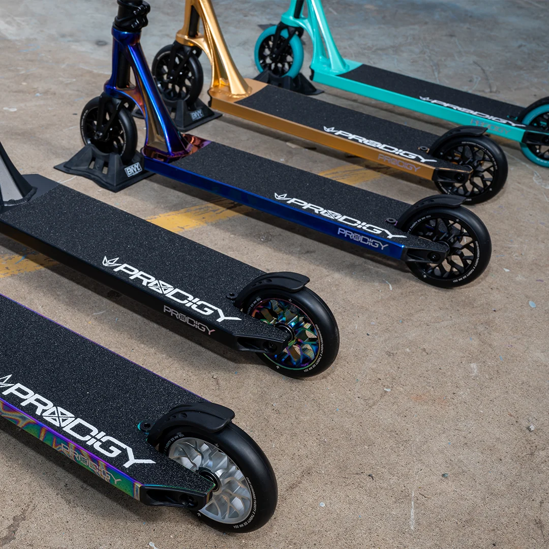 Pokud hledáte něco pro středně pokročilé a pokročilé pak je pro vás model S9 ten pravý. Je to nejprodávanější skútr na světě. Nabízí špičkové komponenty v šesti nových, aktualizovaných a jedinečných barvách. Naštěstí byly z 8. série ponechány klasické hry Oil Slick a Swirl, protože o ně byl velký zájem. Celková výška tohoto skútru je 88 cm, což z něj činí dobrou volbu pro osoby vysoké 160-180 cm. Pokud hledáte koloběžku, se kterou byste mohli zlepšit své dovednosti, Prodigy S9 bude skvělou volbou.