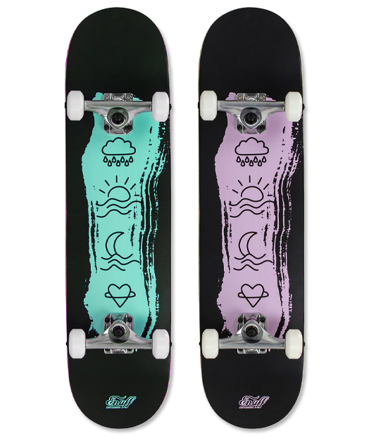 Společnost Enuff byla založena v Londýně v roce 2006 lidmi s vizí značky známé vysokou úrovní zpracování a nabízející výrobky za dostupné ceny. Icon je jedním z dědiců úspěchu, kterého společnost Enuff dosáhla během mnoha let při realizaci své vize. 7vrstvý javorový top s dobrým pop setem na Decade kustom trucks pro dlouhou životnost a skvělý výkon desky. Kolečka se středním poloměrem a tvrdostí si mladí bruslaři dobře zvyknou na pocit z jízdy a poskytují dobrou přilnavost na hladkém povrchu ve skateparcích a skateparcích. Plynulou akceleraci zajišťují ložiska třídy ABEC7, která si zachovávají hladkost i po těžších trikových přistáních.