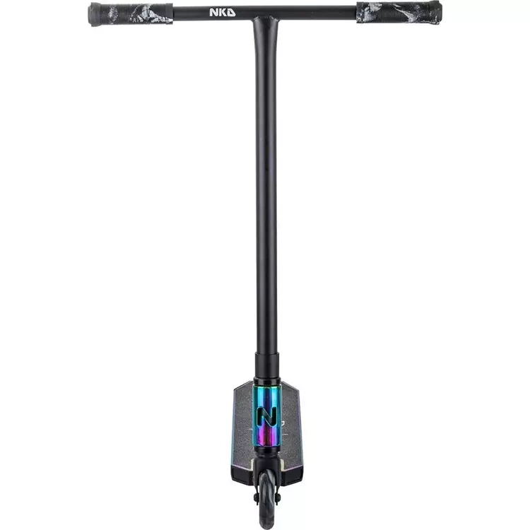 Díky odolnému T-baru z chromované oceli získáte výkonnou koloběžku, která vám poskytne maximální zážitek na ulici/ve skateparku a pohodlný postoj pro vás jako jezdce. Společně s lehkou hliníkovou palubou s pevnou jednodílnou konstrukcí, s dalšími výřezy pod palubou a na N-hlavové trubce, dosahuje koloběžka velmi nízké hmotnosti a přitom neztrácí pevnost! NKD Next Generation využívá oblíbenou přední vidlici Signature a 3D design krku řídítek se zakřivenými bočními zářezy, který zvyšuje pevnost a snižuje hmotnost.