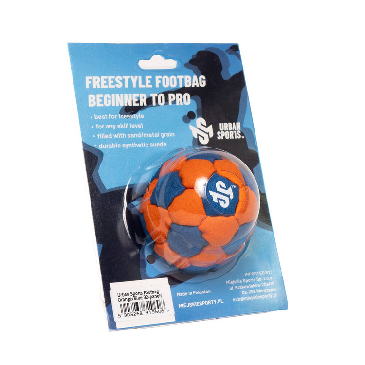 Jste také fanouškem hry footbag, nebo chcete-li, oblíbené hry slushie? Pak byste se mohli podívat na náš nejnovější model. Jedná se o ručně vyrobený míč na nohejbal v modré a oranžové barvě z až 32 panelů. To je o něco více než u standardních modelů - chtěli jsme, aby si míč za letu zachoval svůj tvar a plně se podřídil kontrole uživatele. Díky tomu je ideální pro hru v kruhu nebo přes síť. Je také označen logem Urban Sports!