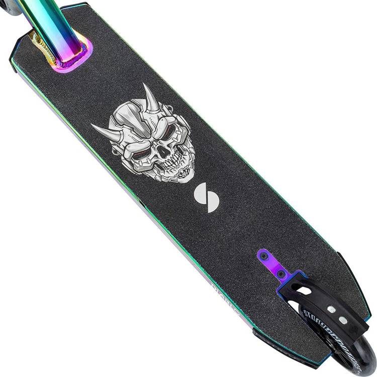 • Výkonný skútr Story Diablo je mimořádně všestranný. Model jako stvořený pro skatepark, rampu nebo rychlou jízdu. Rychle reaguje na zatáčky a odolává tvrdým přistáním!