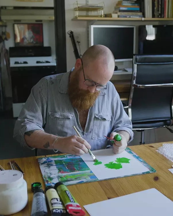 Design tabulí GLOBE Bannerstone Lodge a Spearpoint Motel navrhl Sterling Barlett. Barlett, který působí ve svém malém bytě v Highland Parku v Los Angeles, je dlouholetým přispěvatelem GLOBE, umělcem, designérem, ale také pekařem a výrobcem pálivých omáček. V případě této série dvou desek nemohl Bartlett, omezený koronavirem, vytvářet díla v ateliéru jako obvykle - všechna díla vznikala v jeho vlastním bytě. Tato omezení vedla Bartletta k pracovní metodě inspirované zesnulým umělcem Romarem Beardenem: napůl koláž, napůl malba.