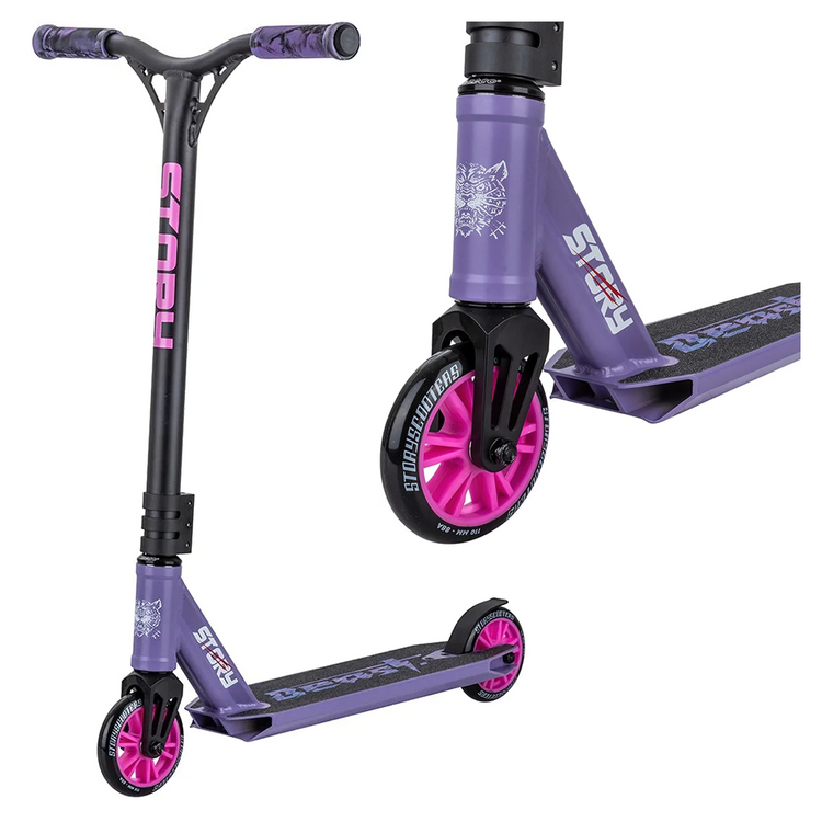 Jako další zametací stroj od společnosti Story se Beast neodchyluje v ergonomii ani odolnosti od moderního standardu výkonných skútrů. Polyuretanová kolečka s nylonovými jádry skvěle odolávají dopadům těch nejtěžších triků a zůstávají konzistentní spolu se superhladkými ložisky ABEC9. Paluba je vyrobena z moderní, lehké hliníkové slitiny a je vybavena 2 kolejnicemi, které usnadňují broušení a umožňují z něj vytěžit maximum. Chromovaná ocelová řídítka umístěná v trojité objímce jsou dlouhodobě odolná proti překlopení a díky celkově nízké hmotnosti byste se museli opravdu snažit, abyste v konstrukci spatřili první zakolísání.