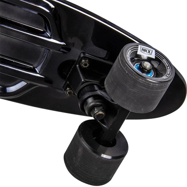 Ložiska 22" kol patří do třídy ABEC11, takže zaručují trvale hladkou jízdu a snadný nárůst hybnosti. Široká a měkká polyuretanová kola tlumí vibrace a zajišťují pohodlnou jízdu. Paluba fiskingu je vyrobena z pevného polypropylenu a unese hmotnost jezdce až 100 kg. Kromě toho byla platforma pokryta kostkovaným gravírováním, které nahrazuje klasický skateboardový griptape a výrazně snižuje pravděpodobnost uklouznutí nohy na desce.