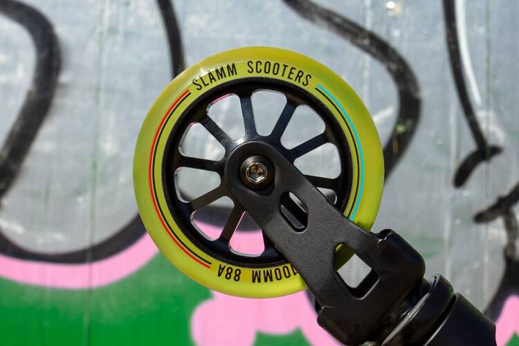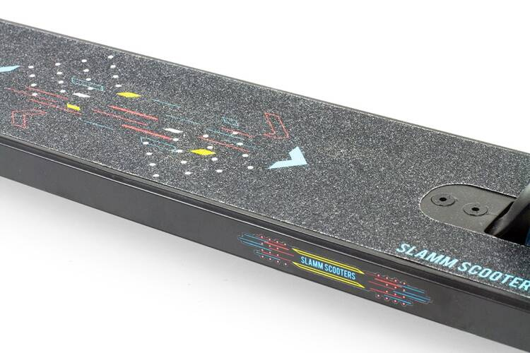 Tento model je příkladem skvělého standardu vysoce výkonných skútrů značky Slamm, který byl díky speciálním dílům použitým zkušenými konstruktéry značky povýšen na ještě vyšší třídu. Exkluzivní rakvový konektor spojující řídítka s plošinou ve spolupráci s kompresním systémem IHC zajišťuje zvýšenou celkovou životnost konstrukce a zaručuje plynulé otáčení v sedle i po dlouhé době náhodného používání. Paluba (platforma) z tepelně upravené hliníkové slitiny T6 se sníženou hmotností, s přídavnými bloky, které ji co nejdéle chrání před odřením a poškozením, k němuž může snadno dojít při skutečném tréninku ve skateparku.