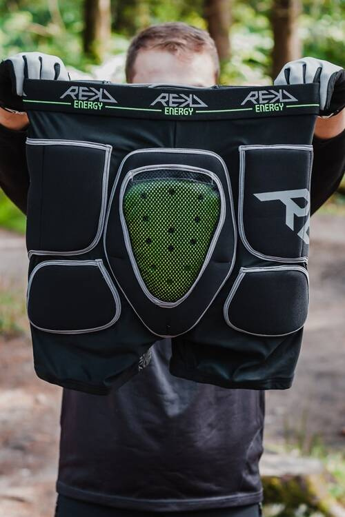 Šortky Rekd jsou vybaveny 4 symetricky umístěnými typy ochranných povrchů. Patří mezi ně chrániče hýždí, přední chrániče stehen, zadní chrániče bicepsových svalů nohou a chránič ocasní kosti, který je vyměnitelný. Konstrukce šortek zabraňuje tomu, aby se nohy při jízdě samy vyhrnuly, a chrániče tak zůstávají na svém místě. Energy Impact od společnosti REKD je univerzální ochranný prostředek, který je díky svému ergonomickému designu vhodný pro použití při všech dynamických sportech.