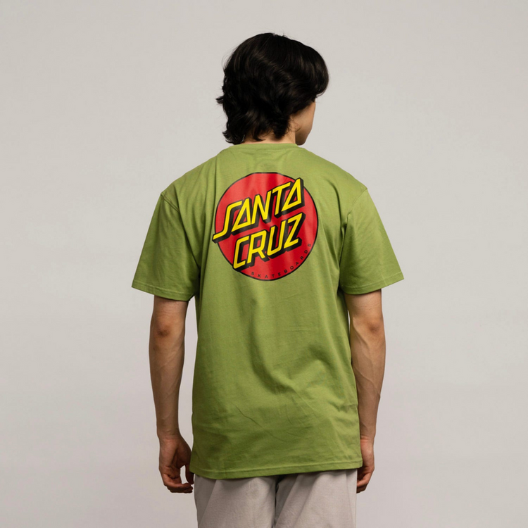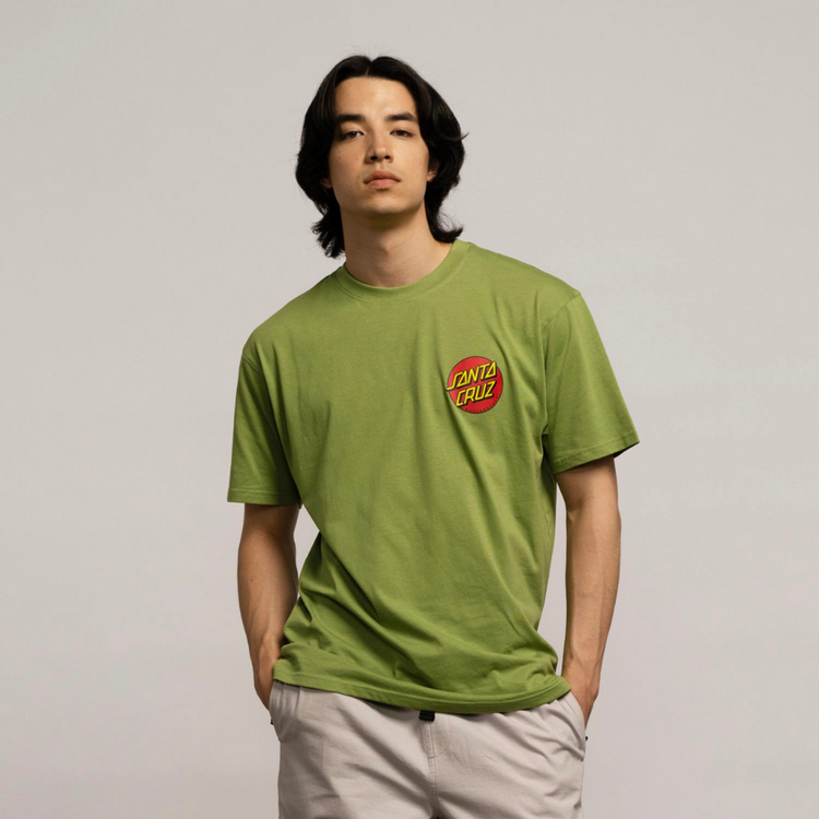 Tričko má klasický potisk loga Santa Cruz Classic Dot na levé straně hrudi a velký potisk na zádech. Díky standardnímu střihu, kulatému výstřihu a příjemnému materiálu je skvělou volbou pro všechna roční období.