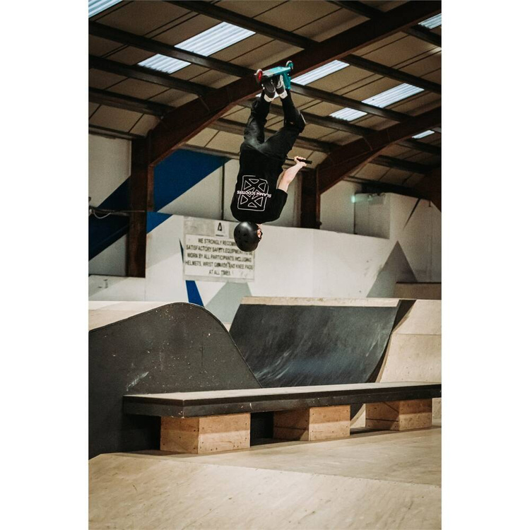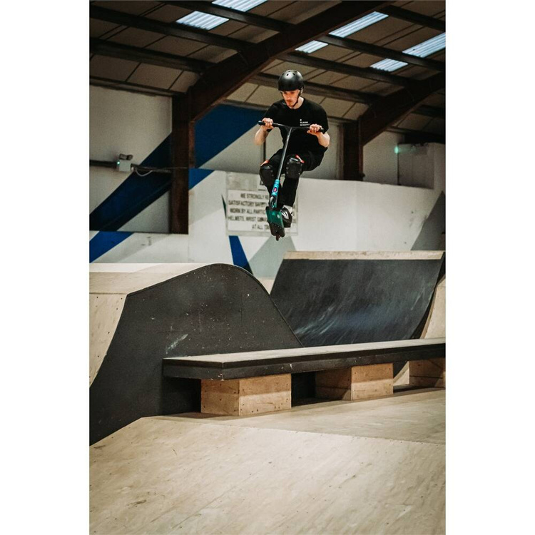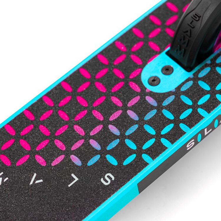 Všechny paluby Slamm jsou tepelně zpracované z materiálu T6 a opatřené bloky, které je chrání před nepovedenými triky a umožní vám užívat si jízdu déle. Koloběžka má eloxovanou palubu s dvoubarevným designem a krabicovou konstrukcí. Je vyroben z hliníku 6061-T6, je dlouhý 527 mm (20,75") a široký 122 mm (4,8"). Má integrovanou CNC řezanou hlavovou trubku, integrovaná polouzavřená bezzávitová ložiska H-52 s černým pouzdrem a přední a zadní nylonové vložky Tato koloběžka je také vybavena skvělou brzdou Flex Fender.