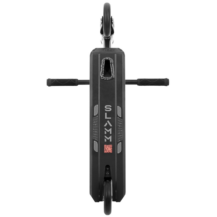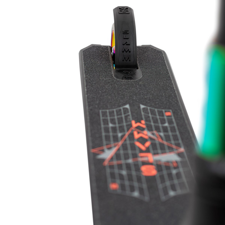 Všechny paluby Slamm jsou tepelně zpracované z materiálu T6 a opatřené bloky, které je chrání před nepovedenými triky a umožní vám užívat si jízdu déle. Paluba tohoto modelu je vyrobena z hliníku 6061-T6, je 495 mm dlouhá a 115 mm široká. Vybaveno polotuhými kormidly NECO 710 s lisovaným těsněním a nylonovými vložkami. Tento skútr je také vybaven skvělou brzdou Flex Fender.