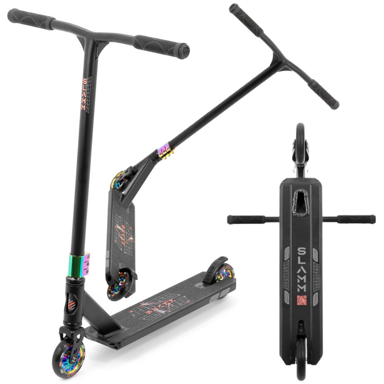 • Slamm Classic je výkonná koloběžka pro začátečníky a středně pokročilé, vybavená pokročilými komponenty. Skvělý design a robustní konstrukce z něj dělají ideální model pro zvládnutí nových triků.