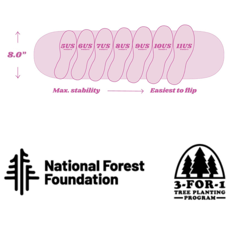 Paluba o šířce 8" (20,32 cm) a délce 31,6" (80,26 cm) má středně konkávní design a je vyrobena ze 7vrstvého odolného kanadského javoru.