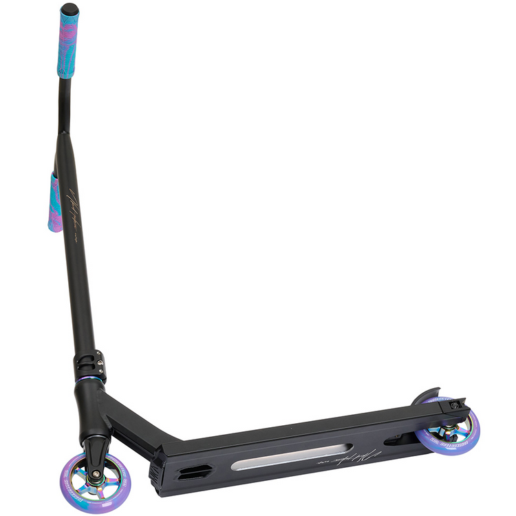 Vysokorychlostní ložiska ABEC 9 spolu se 110mm kolečky umožňují na této koloběžce dosáhnout vyšších rychlostí a s jistotou provádět složitější triky.