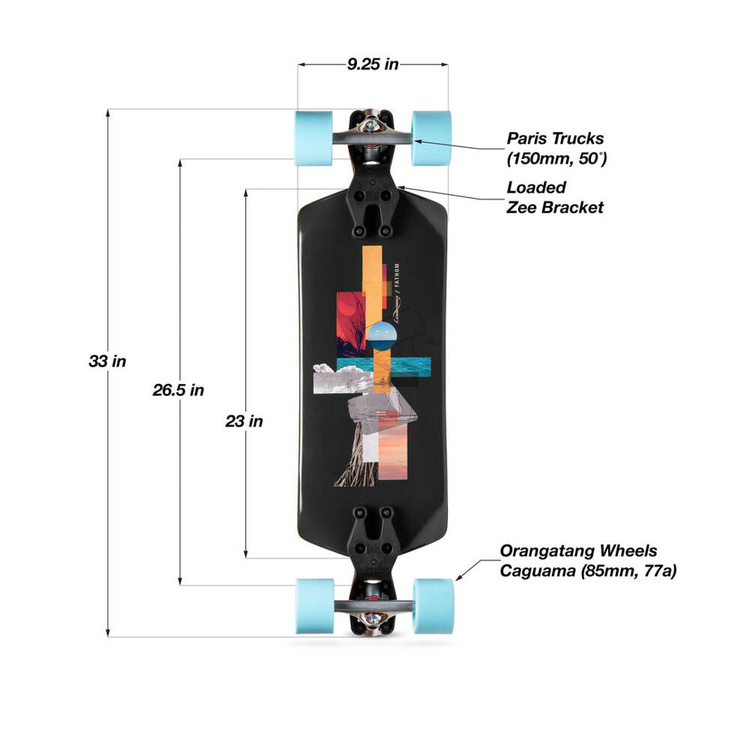 Model Fathom je jedním z nejsnadněji ovladatelných prken na světě, poskytuje spoustu zábavy a je postaven na novém systému uchycení trucků Loaded Zee Bracket. Díky velkým kolům a nízké výšce tento model nově definuje pohodlnou jízdu a prozkoumávání města.
