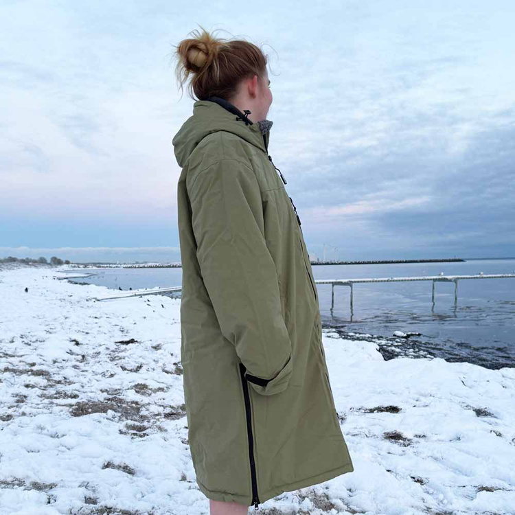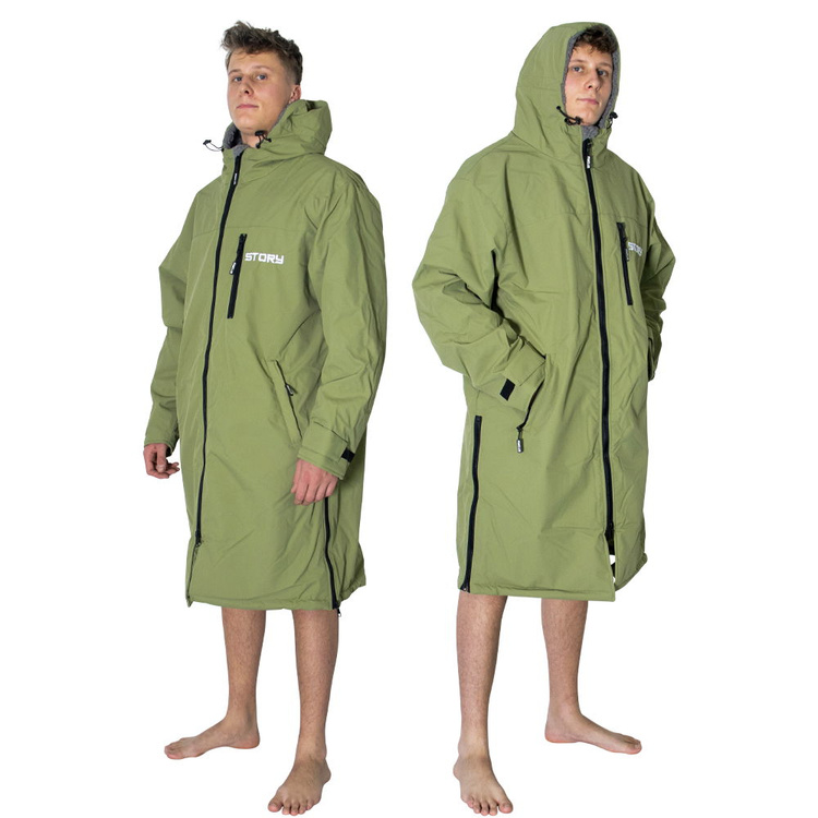 Story Change Robe je bunda s dlouhými rukávy a délkou ke kolenům, která je ideálním řešením, ať už se chystáte na zimní mrože, surfování, plavání, kajak nebo potápění. Díky nepromokavé a větruodolné vnější vrstvě je pončo ideální do nepříznivého počasí. Skvěle se hodí na zahřátí po koupání v chladném moři, jako ochrana před chladným větrem na pláži a jako komfortní ochrana při jízdě na kole nebo procházce v dešti.