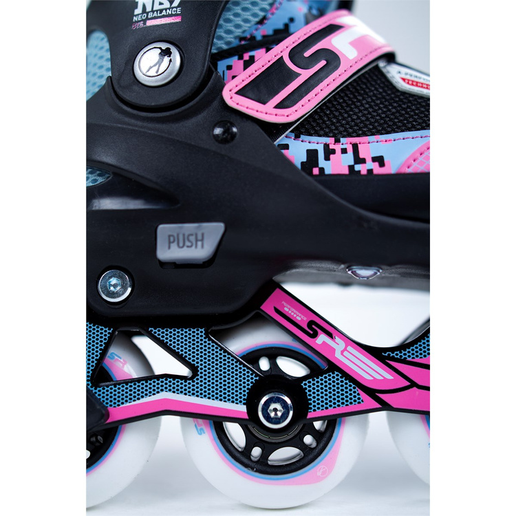 Hledáte kolečkové brusle, které vám poskytnou pohodlí, styl a sebevědomí pro další postup? SFR Pixel je zařízení, které je na všech úrovních - doslova. Jsou lehké, dobře drží nohu a vypadají skvěle. Ale co je nejdůležitější - přizpůsobují se nejen na délku, ale také na šířku! Znamená to, že když noha roste, nemusíte každou sezónu měnit válečky. Změníte velikost a letíte dál! Díky měkké, prodyšné obuvi a velmi pohodlnému polstrování je jízda potěšením. Čím větší velikost, tím větší kola - to znamená větší rychlost a plynulost. Zní to dobře? No a co, je čas pohnout se k pokroku?
