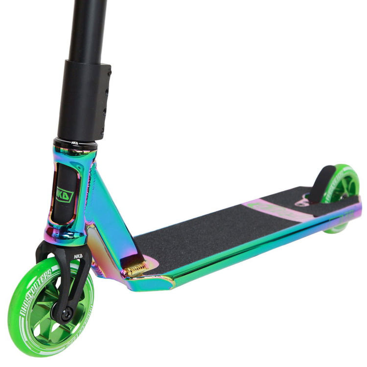 Vysoce výkonná koloběžka NKD Fuel byla vytvořena tak, aby splňovala požadavky všech nadšenců, kteří chtějí objevovat nové triky ve skateparku nebo vyrazit do ulic s lehkostí a skvělým stylem. Díky své všestranné konstrukci je jednou z nejlehčích a nejodolnějších koloběžek na trhu.
