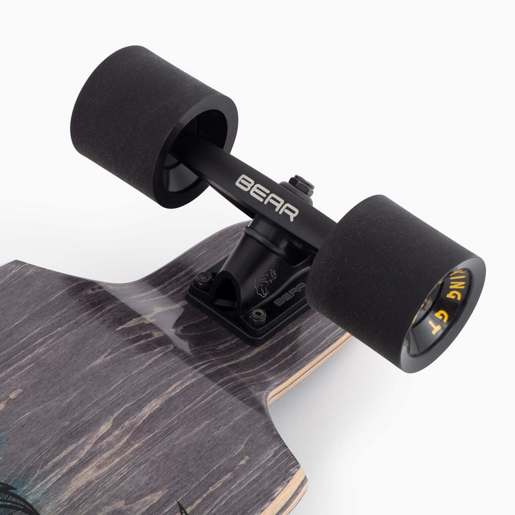 Jak je u LandYachtz zvykem, kola a truckies decha přidat bezkonkurenční spokojenost s jízdou. Plow Kingi s měkkou tvrdostí 78a je skvělým základem, který zachovává dostatečnou rychlost a stabilitu při rychlé jízdě a udržuje jízdu na cruiseru vzrušující. Navíc tlumí drobné povrchové nárazy a triková přistání, pokud chcete na tomto Surfing Low Rideru zkoušet vzdušné kousky :) Bear Trucks jsou dobře známé a důvěryhodné podvozky od LY, které umožňují hluboké hladké a medové carvingy.