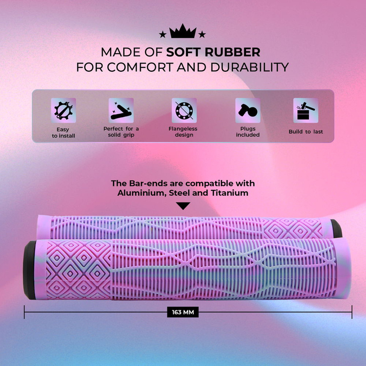 Pokud je pro vás koloběžka víc než jen dopravní prostředek - je to způsob života - pak jsou gripy NKD GOAT určeny právě pro vás. Jsou navrženy pro maximální pohodlí a přesnost, takže se budou hodit jak pro intenzivní jízdu ve skateparku, tak pro každodenní jízdu po městě. Měkká, ale robustní pryž zajišťuje pevný úchop i při dlouhodobém používání - aniž by to bylo na úkor pohodlí. Jejich bezokrajová (flangeless) konstrukce nabízí nejen moderní vzhled, ale také plnou volnost pohybu rukou při tricích a otočkách. Dostupnost více barev vám umožní dokonale přizpůsobit gripy vašemu stylu a nastavení.
