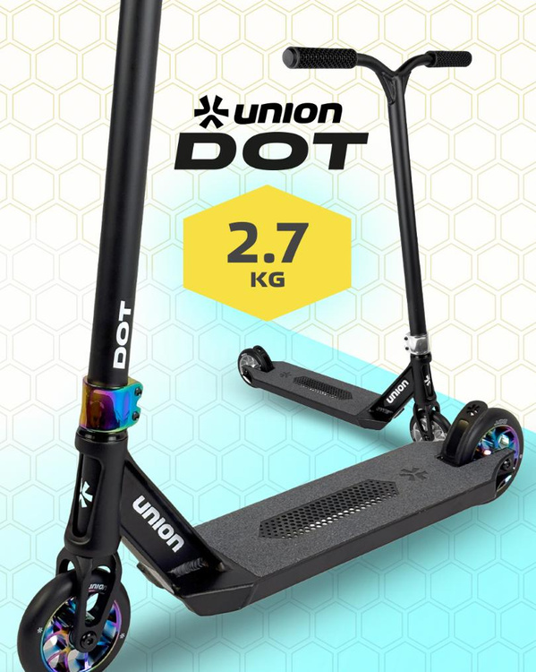 Hledáte vybavení, které vám umožní vyždímat z každého triku maximum? Union Dot je již k dispozici! Tento lehký skútr váží pouhých 2,75 kg , díky čemuž jeden z nejlehčích sériově vyráběných výkonných skútrů na světě! Taková hmotnost není jen působivá - je to zcela nová úroveň kontroly nad triky, ovladatelnosti a plynulosti jízdy. Pro městského sportovce, který koloběžku nebere jen jako součást vybavení, ale jako součást svého životního stylu, představuje skutečnou změnu. Lehkost znamená menší únavu při intenzivních sezeních, větší přesnost při technických tricích a plnou volnost pohybu. A co je důležité - navzdory své ultralehké konstrukci je Union Dot neuvěřitelně robustní a připravený na jakoukoli překážku v městské džungli.