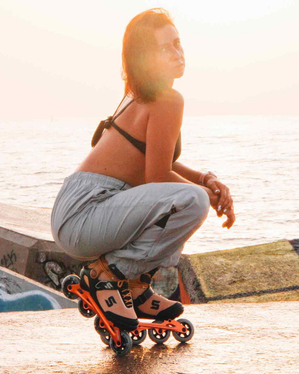 Silná hliníková kolejnice zpevňuje konstrukci a pomáhá vám rychle zrychlit při každém shromáždění k jízdě. Tvrdá plastová vnější skořepina boty poskytuje noze dobrou oporu a umožňuje bezpečný pocit kontroly. Vnitřní vrstva bruslí je vyrobena z PVC a měkké pěny pro zvýšení pohodlí a co nejlepší přilnutí nohou k botám. Kola o velikosti 84 mm jsou osazena ložisky ABEC7, takže je zaručeno příjemné kutálení se snadno dostupnými vyššími rychlostmi a skvělá ovladatelnost :)