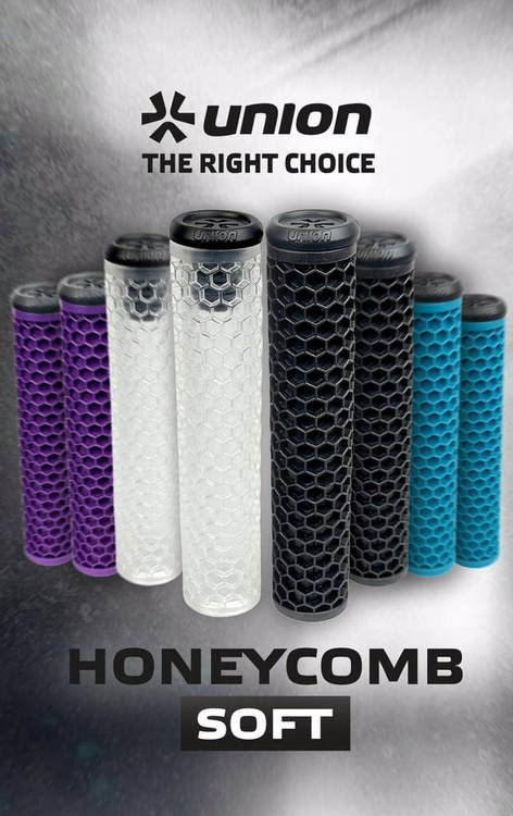 • Gripy Union Honeycomb Soft jsou velmi měkké, odolné a pohodlné 155 mm dlouhé gripy s voštinovou strukturou, které dobře drží i při tvrdé jízdě. K dispozici v mnoha barvách a s víkem.