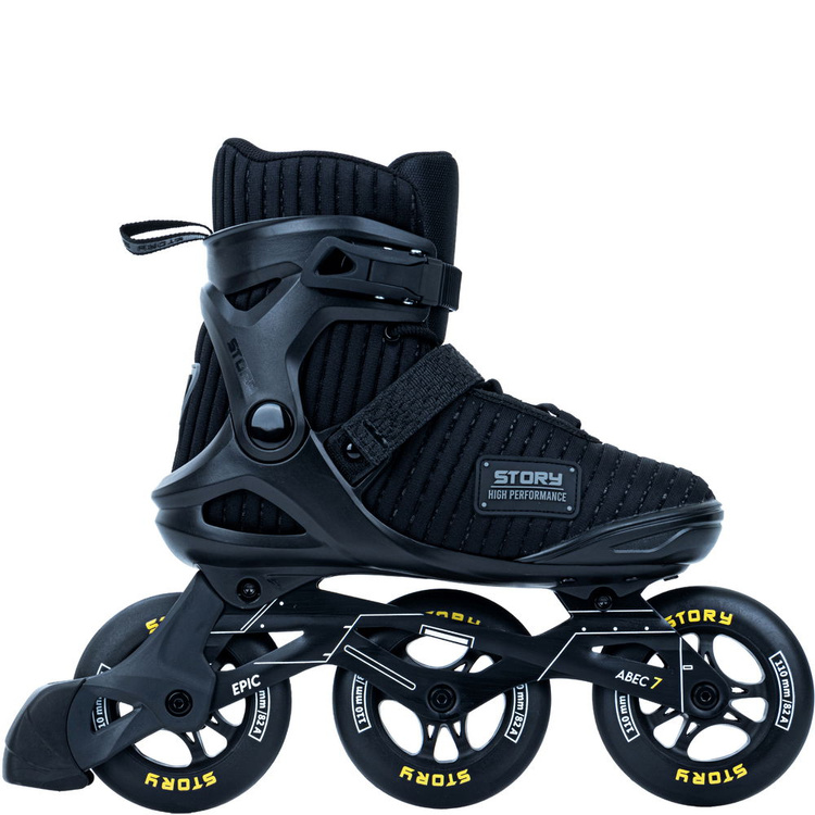 Story Epic je tříkolová brusle vytvořená s ohledem na městské sportovce - ty, kteří odmítají kompromisy mezi stylem, pohodlím a výkonem. Je to zařízení, které nejen skvěle vypadá, ale především funguje - ať už při dynamické jízdě na asfaltu, nebo při klidné jízdě v parku. Moderní silueta, různobarevná kola a ergonomický design vytvářejí poutavý celek pro maximální potěšení z jízdy. Díky perfektnímu střihu a vysoké podpoře kotníku je každý pohyb plynulý a přesný - přesně tak, jak to máte rádi.