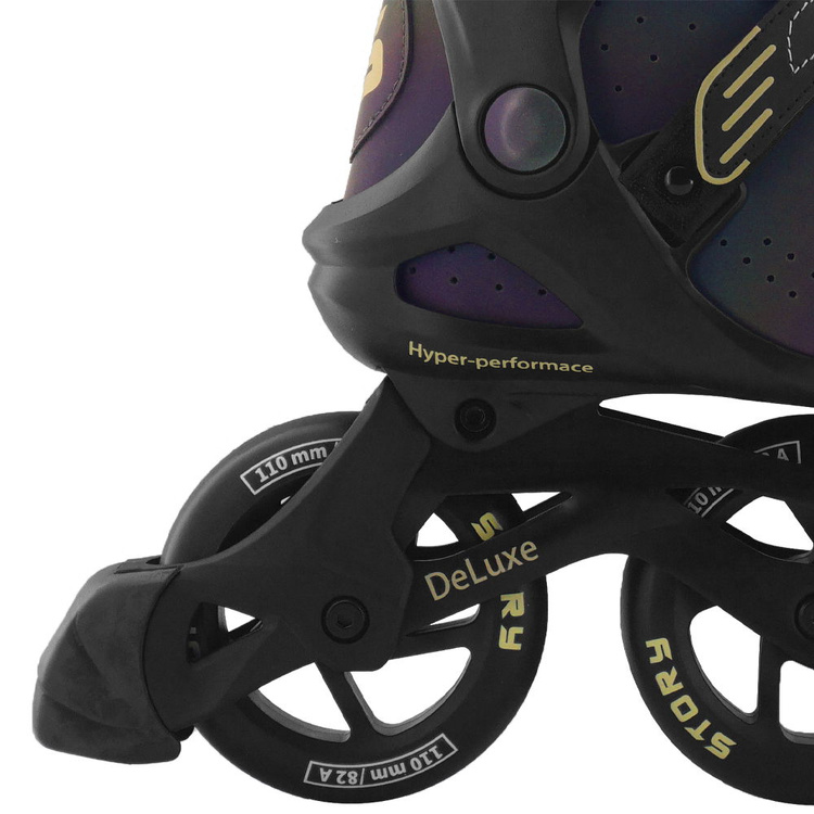 Story Space je skate vytvořený pro městské sportovce, kteří nehledají kompromisy mezi kvalitou a stylem. Tříkolová konstrukce a výkonná 110mm kolečka umožňují dynamickou jízdu na asfaltových stezkách i ve skateparcích. Ať už trénujete, nebo se jen chcete rychle a stylově pohybovat po městě, tyto kolečkové brusle budou držet krok s vaším tempem.vysoký svršek, prodyšný interiér a robustní hliníková kolejnice poskytují nejen pohodlí a stabilitu, ale také lehkost potřebnou pro vyšší rychlosti. Kombinace technických řešení a moderního designu dělá z každé jízdy podívanou.