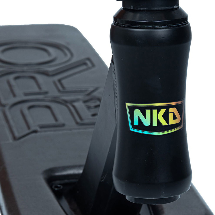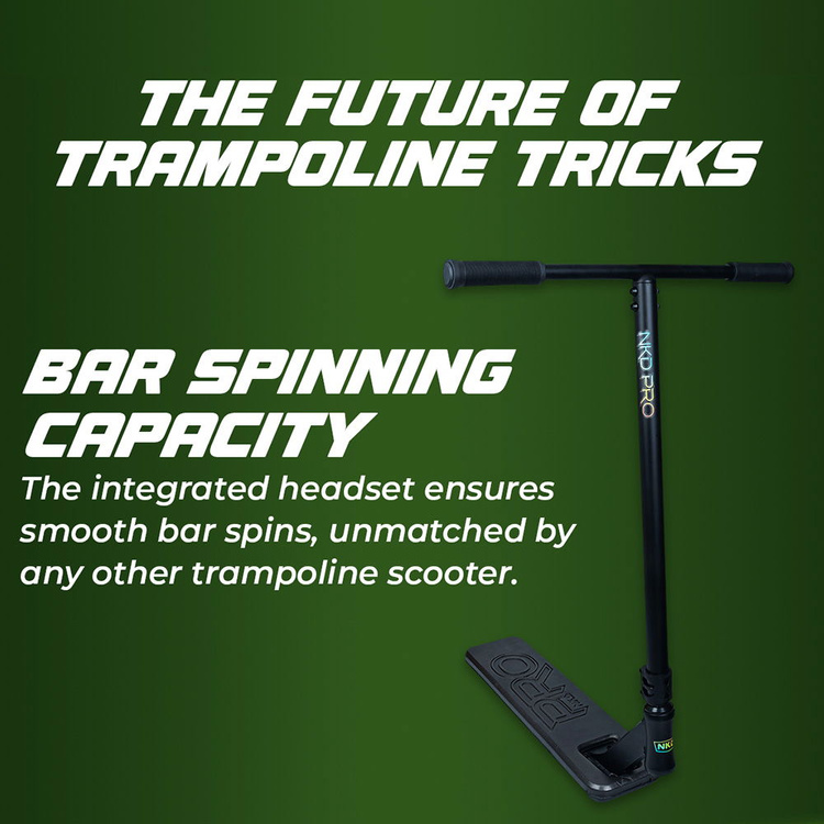 Na rozdíl od běžných trampolínových koloběžek má model NKD Pro palubu se záměrným posunem rozložení hmotnosti směrem ke konci. Díky této jedinečné konstrukci je provádění triků, jako je například švihání ocasem, plynulé, a jezdci tak mohou snadno zvládnout tyto typy triků. Ať už trénujete na trampolíně, nebo cvičíte v parku, tato koloběžka vám zajistí, že budete vždy v nejlepší formě.