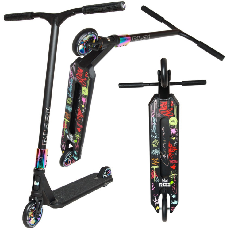 NKD RIZZ Stunt Scooter Black and Rainbow 85 cm