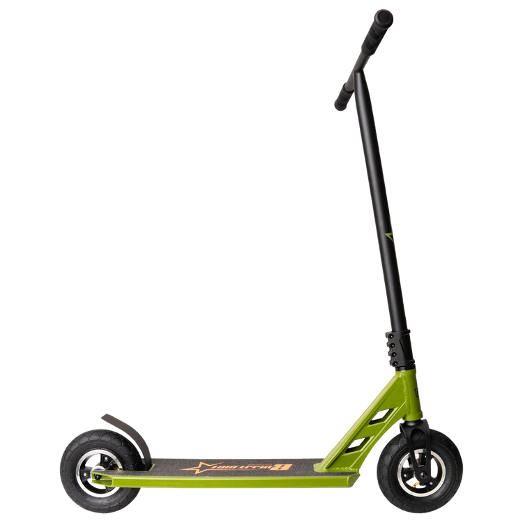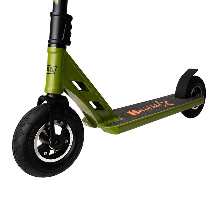 • Koloběžka NKD Bullit Dirt Scooter je výkonná terénní koloběžka s velkými, nafukovacími a vysoce odolnými MTB koly. Navrženo pro jízdu a provádění triků v téměř jakémkoli terénu.