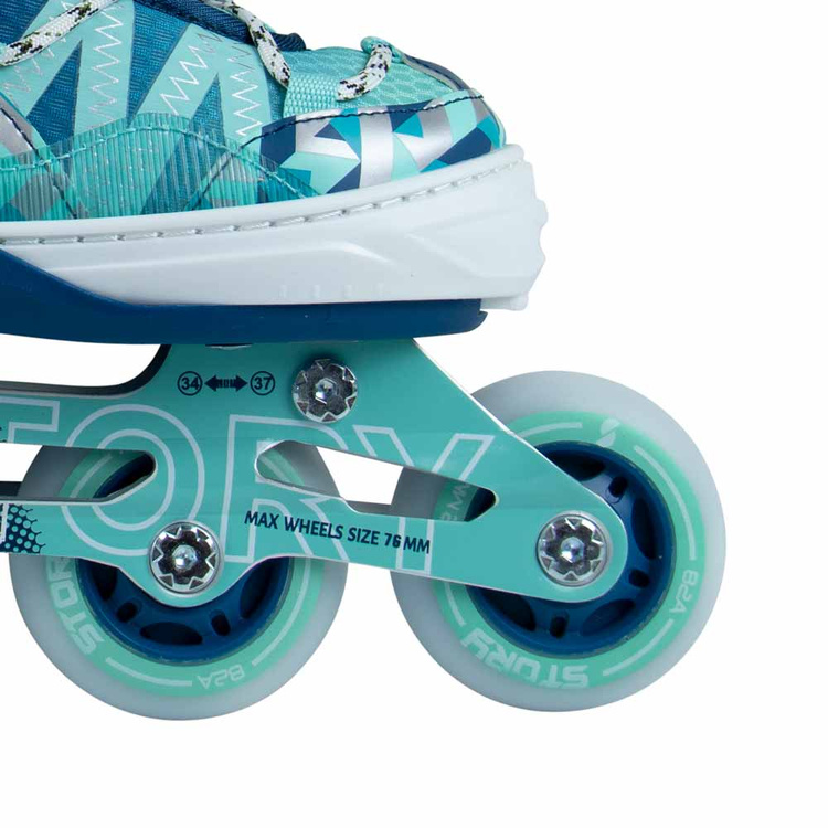 - Průměr kol: 64 mm (pro velikost EU 30-33) / 70 mm (pro velikost EU 34-37) / 76 mm (pro velikost EU 38-41) - přizpůsobeno městskému tempu pro pohodlnou jízdu