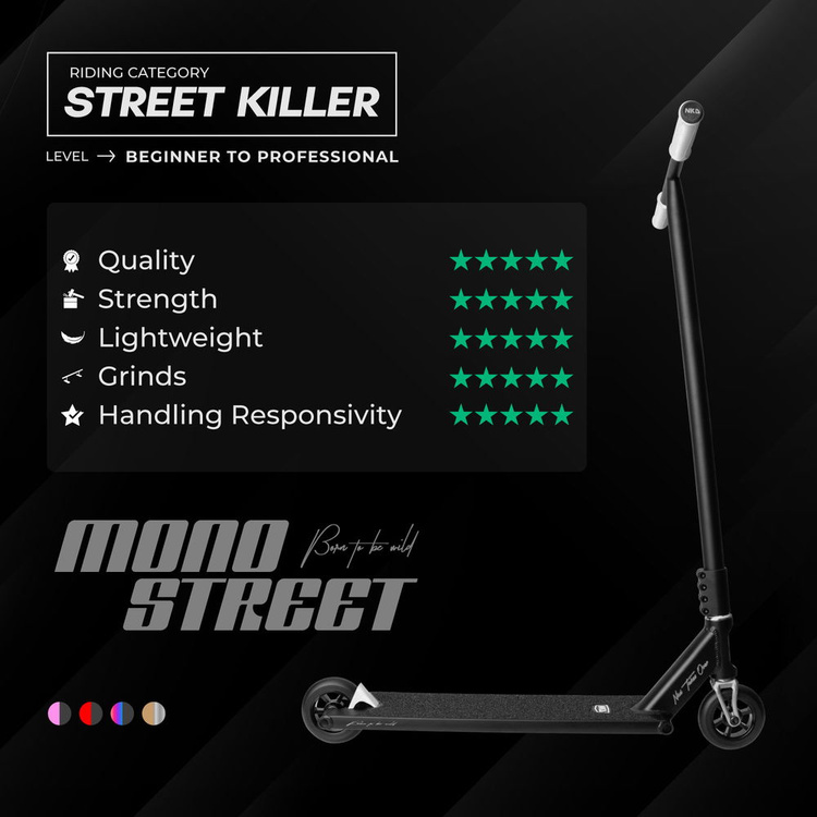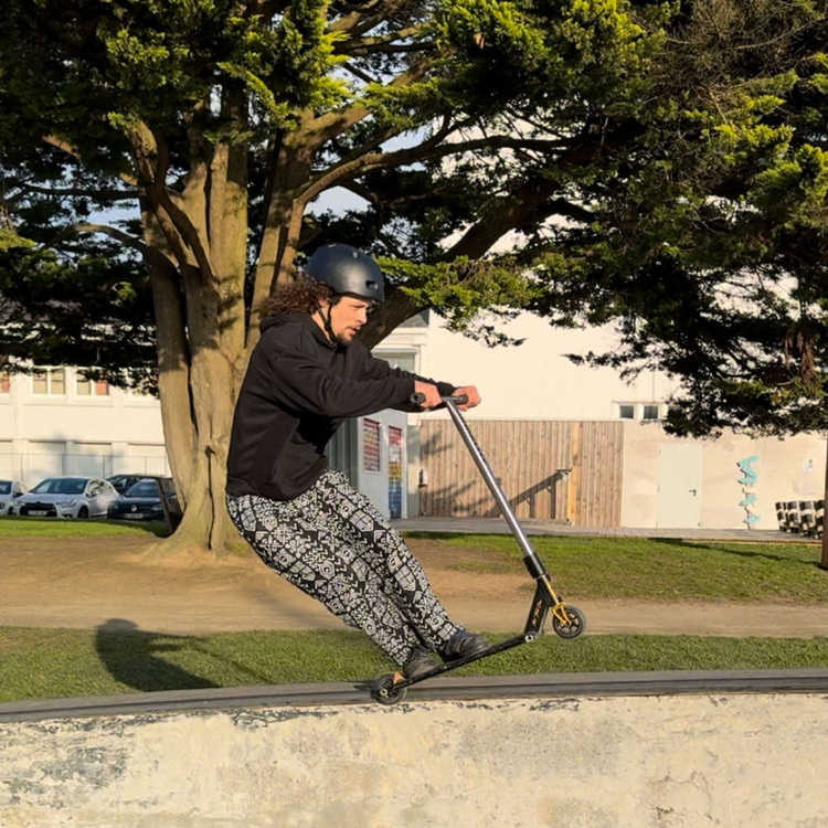 - Široká, robustní kola s průměrem 115 mm, šířkou 30 mm a tvrdostí 88A pro měkké a snadné přistání a vynikající přilnavost. Mají hliníková jádra 6061 T6, která zajišťují mimořádnou odolnost, a jejich kulatý profil zaručuje menší odpor. Kromě toho silniční brzda chrání zadní kolo před neočekávaným zastavením