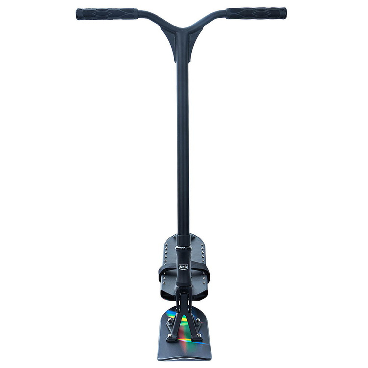 Značka NKD navrhla nejinovativnější výkonný skútr na světě! Profesionální snowboardová deska vyrobená ze dřeva a uhlíkových vláken s ABS lištami je maximálně výkonným vybavením na nejvyšší úrovni. NKD Pro Snow Stunt Scooter je model s celkovou výškou 87,5 cm a je vhodný pro jezdce od 7 let.