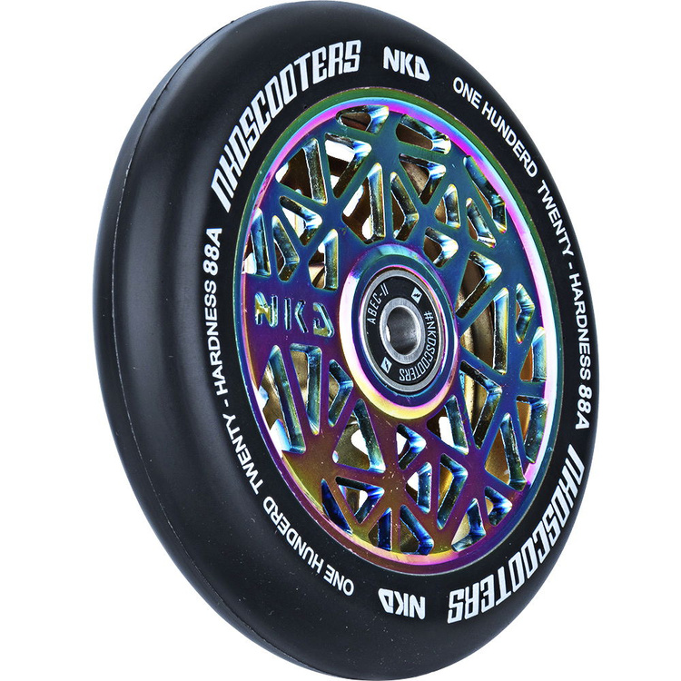 • NKD Black Widow je kolo s dutým jádrem a zaoblenými tvary. Kolo má průměr 120 mm a tvrdost 88A, takže je ideální pro jízdu na ulici i v parku.