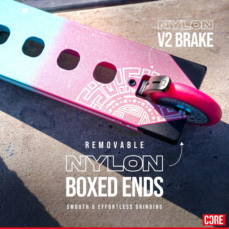 Plně integrovaná náhlavní souprava a lehká paluba umožňují přesné ovládání koloběžky při učení dalších triků. Revoluční dvoudílná řídítka snižují uhlíkovou stopu a zároveň zpevňují celou konstrukci, což vede k ještě větší jistotě při tricích a jízdě. CORE CD1 nejen skvěle vypadá, ale také uspokojí potřeby těch, kteří se chtějí vyjádřit pohybem, stylem a dynamikou. Vyberte si vybavení, které udrží vaše tempo.
