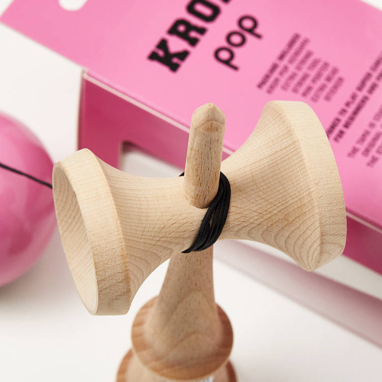 Współpracując z graczami kształt Popa został dopracowany w każdym calu, każda krawędź i każde zagięcie pasuje do odpowiednio wyprofilowanego otworu w kuli (tamie). Pozwala to na wykonanie całego spektrum współczesnych trików. Kendama KROM Pop poza technicznymi możliwościami oraz najwyższej klasy materiałami (drewno bukowe klasy A odporne na odpryski), to też doskonały, skandynawski design, zamknięty w gustowny opakowaniu, dzięki temu kendama to doskonały pomysł na prezent.