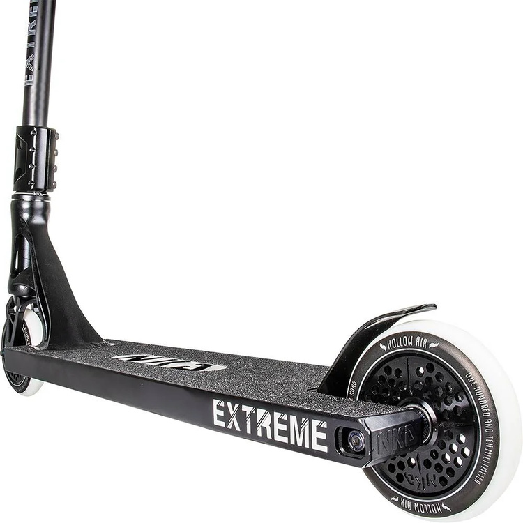 • NKD Extreme to hulajnoga wyczynowa z najwyższej półki, przeznaczona dla młodzieży i dorosłych o wzroście od ok. 130 cm w górę. Wykonana z najlepszej jakości komponentów.