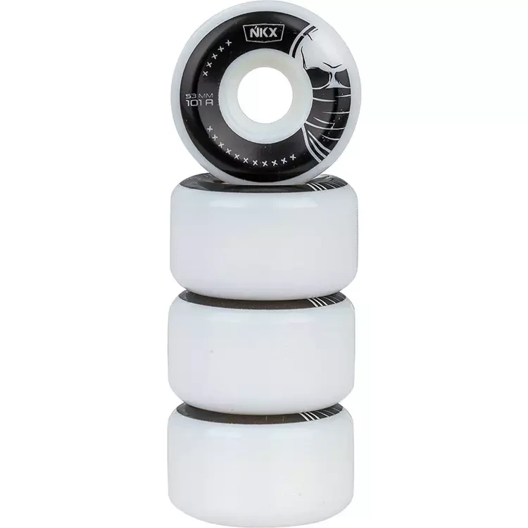 • NKX Skate or Die Series Wheels to świetne kółka do deskorolki o średnicy 53 mm wykonane z wysokiej jakości poliuretanu o twardości 101A. Dzięki profilowi H Shape zapewniają optymalną przyczepność oraz stabilność i kontrolę przy każdym tricku.