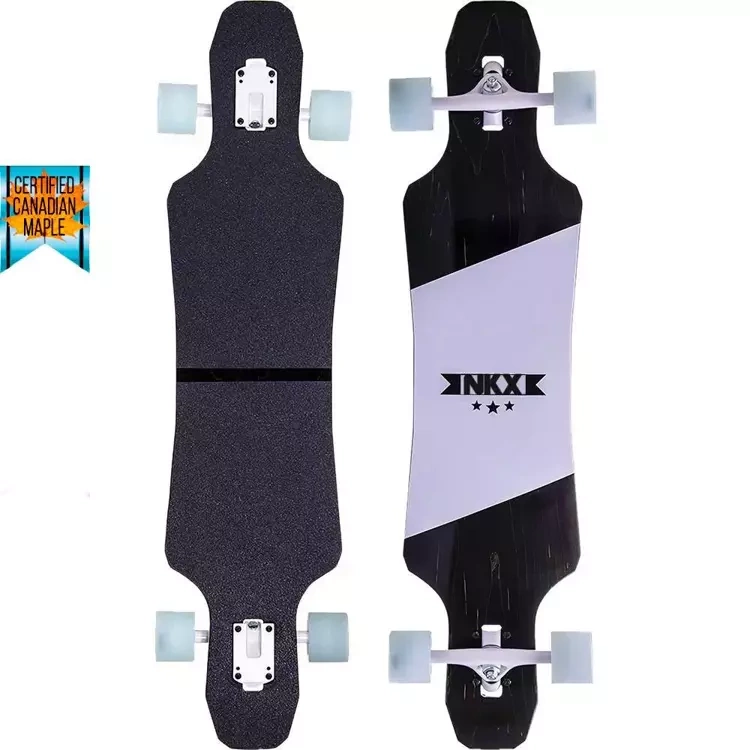 NKX Fearless to uniwersalna konfiguracja typu allround longboard. Deck został wykonany z kanadyjskiego klonu, jest on drewnem o bardzo wysokiej wytrzymałości i elastyczności. Blat posiada 7 warstw tego drewna, które zostało spojone ze sobą poprzez laminowanie termiczne, dzięki czemu posiada bardzo dobry flex. Symetryczny kształt twin tip z dużymi wycięciami eliminuje tarcie kół o blat przy mocniejszych skrętach oraz pozwala jeździć w obu kierunkach. Umieszczono tu bardzo dobrej jakości trucki NKX Flow Deluxe o szerokości 180mm, które zamontowane są w systemie drop thru - dzięki temu blat znajduje się bliżej ziemi. Wszystko to pozwoli łatwo kontrolować deskę - odpychanie się na niej również nie stanowi najmniejszego problemu!