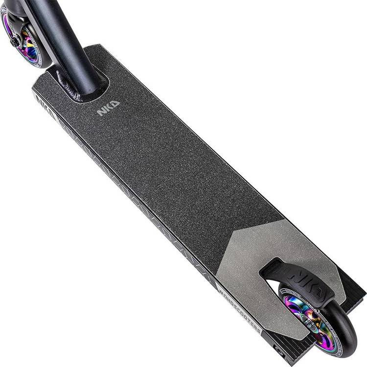 Hulajnoga Wyczynowa NKD Octane to kolejna kapitalna propozycja cenionej marki NKD. Gdzie najlepiej rozwinie swoje skrzydła? Możesz poruszać się nią po mieście, jednak pełnię swoich możliwości pokazuje dopiero na skateparku. Wszystko za sprawą połączenia niskiej wagi (3900 gramów) oraz niezwykłej wytrzymałości. Tak, bez trudu wylądujesz po naprawdę wysokim skoku, np. z przeszkody. Nie są to czcze słowa. Oficjalny stopień wytrzymałości materiału to T6. Oznacza to, że aluminium, z którego wykonana jest hulajnoga, zostało sprasowane z siłą aż 6 ton, aby wzmocnić swoją trwałość.