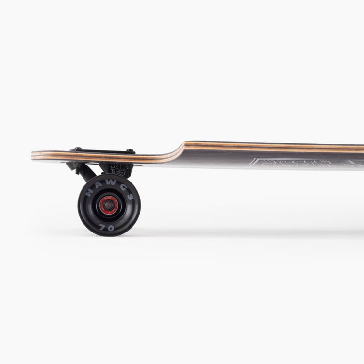 Drop Hammer to symetryczny longboard typu drop-through o wymiarach 36,5" długości i 10" szerokości. Nisko położony deck sprawia, że Drop Hammer idealnie nadaje się do jazdy po mieście, a średni concave i dość sztywna konstrukcja sprawiają, że jest to idealna deska do wprowadzenia i postawienia pierwszych kroków we freeride i carvingu na większych zjazdach. Drop Hammer został lekko zmodyfikowany z rokiem 2020, aby współpracować z nowymi truckami Grizzly Gen 6 180mm dla maksymalnego skrętu i super głębokich carvów.