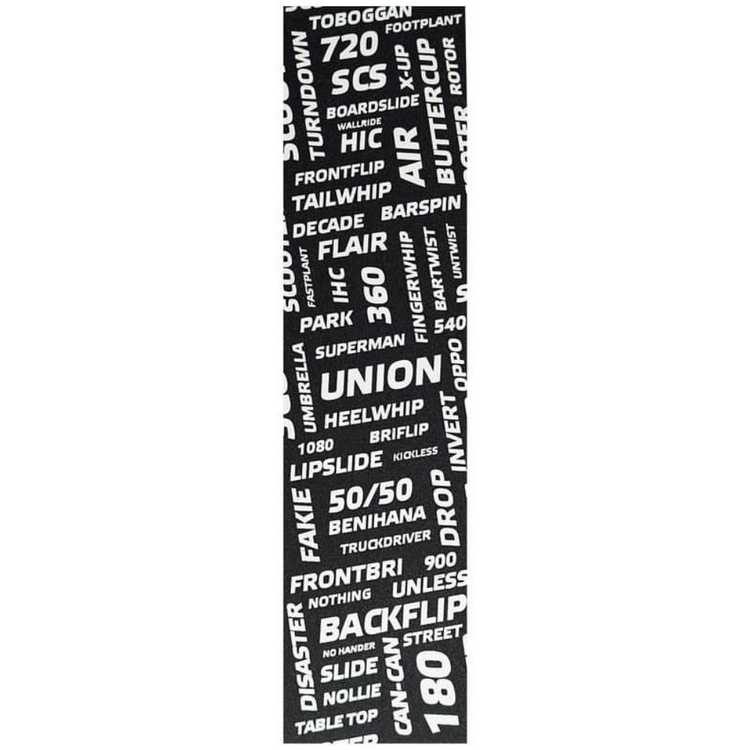 • Griptape Union to standardowy papier ścierny, zapewniający świetną przyczepność podczas jazdy i wykonywaniu tricków na hulajnodze. Dzięki oryginalnym grafikom nada on stylu Twojej hulajnodze!