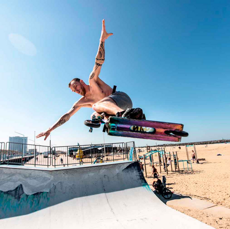 NKD Turbine to jeden z najbardziej szalonych modeli hulajnóg wyczynowych od NKD! Jeśli kochasz zgrabne akrobacje i obroty, to hulajnoga NKD Turbine jest oczywistym wyborem dla Ciebie, niezależnie od tego czy wolisz skatepark czy streetstyle!