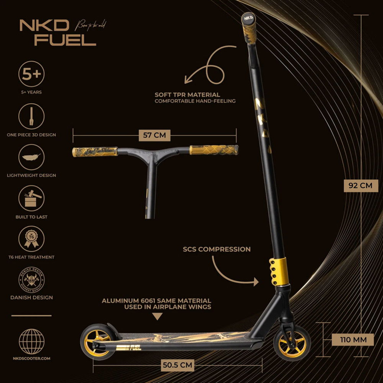 • NKD Fuel to hulajnoga wyczynowa zaprojektowana zarówno do jazdy w skateparku, jak i na ulicy. Dzięki wszechstronnej konstrukcji jest jedną z najlżejszych i najbardziej wytrzymałych hulajnóg dostępnych na rynku.