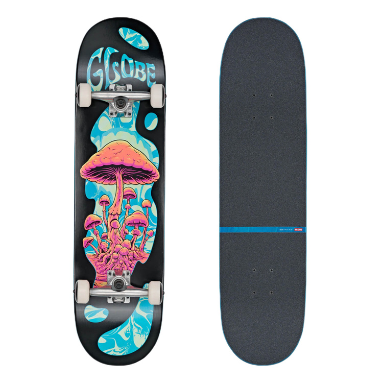 Globe G1 to kompletna deskorolka o szerokości 8.25” (20,95 cm) i długości 32" (81,28 cm), złożona z najwyższej jakości części. Posiada deskę z twardego klonu w konstrukcji Resin-7, czyli siedem warstw połączonych ze sobą żywicą. Do prasowania wszystkich desek firma Globe używa właśnie żywicy epoksydowej, co sprawia, że są one lżejsze, mocniejsze i trwalsze niż zwykłe deski na bazie wody. Indywidualne prasowanie zapewnia, że każda deska jest dokładnie taka sama.