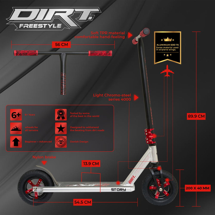 - Niesamowicie wytrzymałe, a jednocześnie bardzo lekkie materiały - to jedna z najlżejszych hulajnóg terenowych na rynku, łatwa w prowadzeniu i przenoszeniu