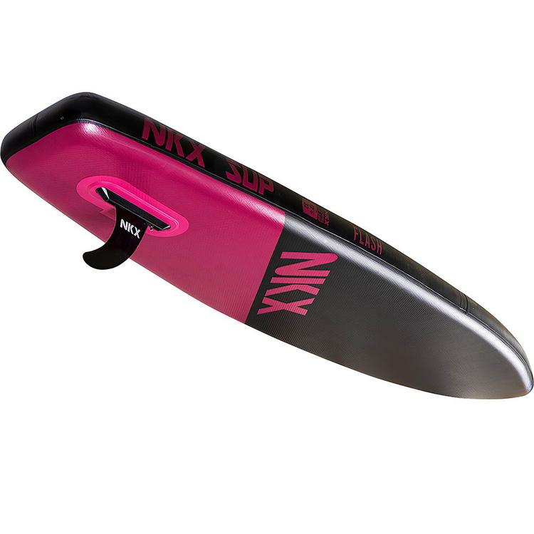 SUP NKX Flash został zaprojektowany z myślą o lekkiej i jednocześnie wytrzymałej konstrukcji. Układ budowy SUP’a w formacie “double rail” zapewnia bardzo dobrą sztywność i zwiększoną integralność dzięki czemu można napompować ją pod większym ciśnieniem. Lekka waga zapewnia również większą kontrolę nad deską podczas wiosłowania i współgra z turystycznym typem kształtu deski, czyli szerokim podestem zapewniającym dużą stabilność, ze spiczastym końcem pomagającym w łatwiejszym nabieraniu prędkości i w przecinaniu fal. Dodatkowym atutem lekkości jest oczywiście wygoda w przenoszeniu SUP’a na plażę i z powrotem. Możemy ją spakować do zawartego w zestawie plecaka lub zawiesić na plecach na pasku.