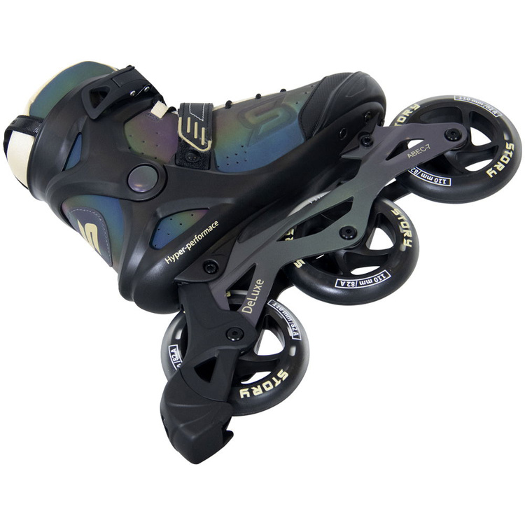 Story Space to rolki stworzone z myślą o miejskich sportowcach, którzy nie uznają kompromisów między jakością a stylem. Trójkołowa konstrukcja i potężne koła o średnicy 110 mm pozwalają na dynamiczną jazdę zarówno po asfaltowych trasach, jak i w skateparkach. Niezależnie, czy trenujesz, czy po prostu chcesz szybko i stylowo przemieszczać się po mieście – te rolki nadążą za Twoim tempem. Wysoka cholewka, oddychające wnętrze i solidna szyna z aluminium zapewniają nie tylko komfort i stabilność, ale też lekkość potrzebną do osiągania wyższych prędkości. Połączenie technicznych rozwiązań z nowoczesnym designem sprawia, że z każdej przejażdżki zrobisz widowisko.