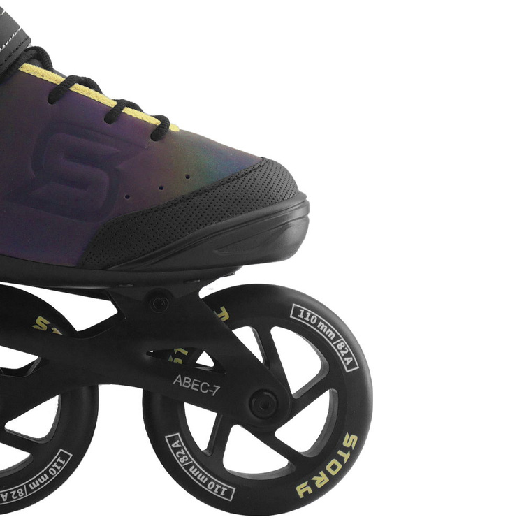 Story Space to rolki stworzone z myślą o miejskich sportowcach, którzy nie uznają kompromisów między jakością a stylem. Trójkołowa konstrukcja i potężne koła o średnicy 110 mm pozwalają na dynamiczną jazdę zarówno po asfaltowych trasach, jak i w skateparkach. Niezależnie, czy trenujesz, czy po prostu chcesz szybko i stylowo przemieszczać się po mieście – te rolki nadążą za Twoim tempem. Wysoka cholewka, oddychające wnętrze i solidna szyna z aluminium zapewniają nie tylko komfort i stabilność, ale też lekkość potrzebną do osiągania wyższych prędkości. Połączenie technicznych rozwiązań z nowoczesnym designem sprawia, że z każdej przejażdżki zrobisz widowisko.